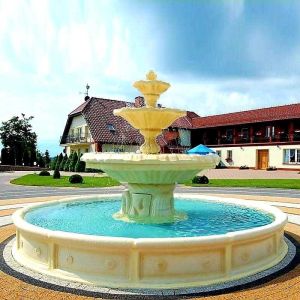 Zestawy z Fontanną Włoską to eleganckie kompozycje, które harmonijnie łączą klasyczne wzornictwo z funkcjonalnością. Charakterystyczna, trzypoziomowa Fontanna Włoska z misternymi zdobieniami i szyszką wieńczącą konstrukcję stanowi centralny punkt każdej aranżacji ogrodowej. Zestawy są dostępne w połączeniu z oczkami wodnymi o różnych rozmiarach, co pozwala na dopasowanie do przestrzeni zarówno mniejszych ogrodów, jak i reprezentacyjnych posesji. Solidne wykonanie z betonu architektonicznego oraz możliwość rozbudowy o system ringów z dyszami i oświetlenie LED sprawiają, że zestawy te nie tylko zdobią otoczenie, ale także wprowadzają do niego relaksujący szum wody i nastrojową atmosferę.